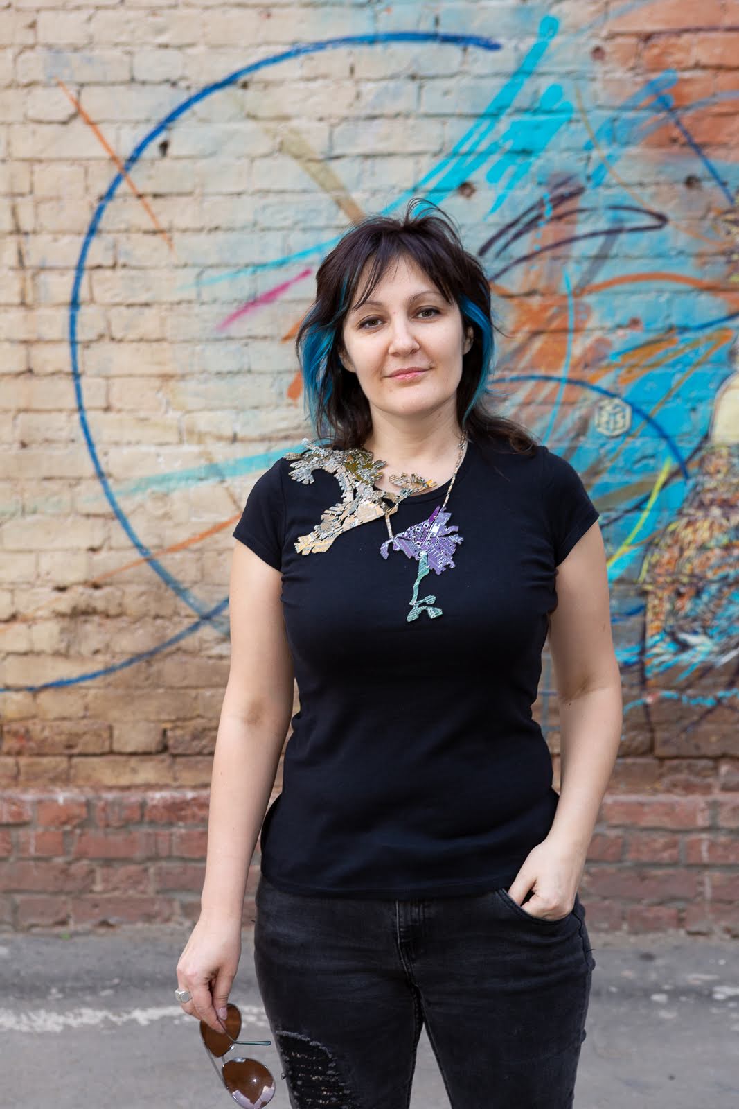 Тема экодизайна близка автору как никакая другая. Сегодня изделия и работы Алины известны не только в Саратове, но и далеко за его пределами благодаря участию художницы в различных фестивалях и выставках. С каждой новой коллекцией Алина раскрывает для себя и для зрителей новые грани материала, воплощая самые неожиданные и смелые идеи — например, рисует микросхемы на своих авторских тарелках!
