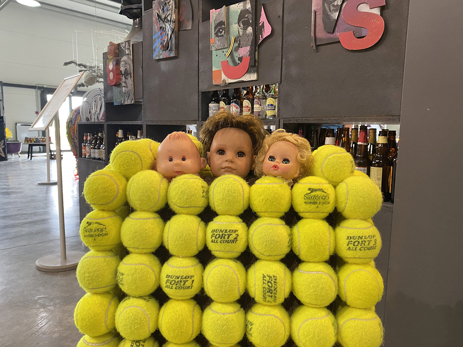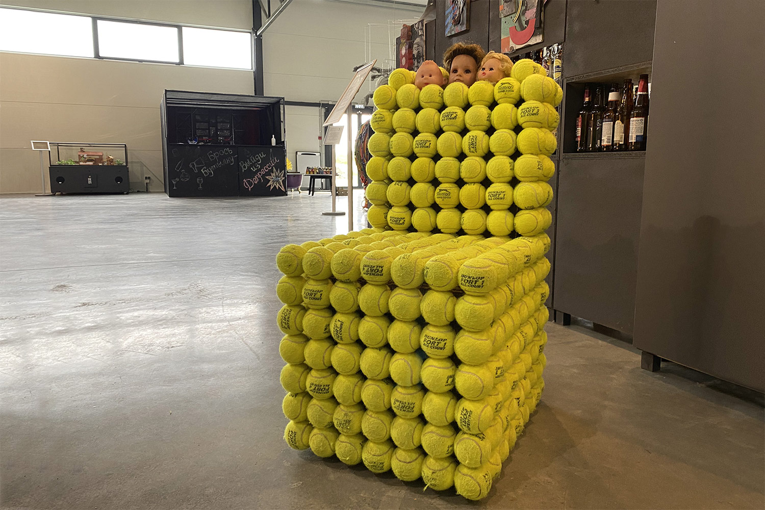 Творческий тандем Ирины Назаровой и Владимира Рунова не первый раз использует в качестве материала для создания своих экспонатов именно мячи для большого тенниса.
