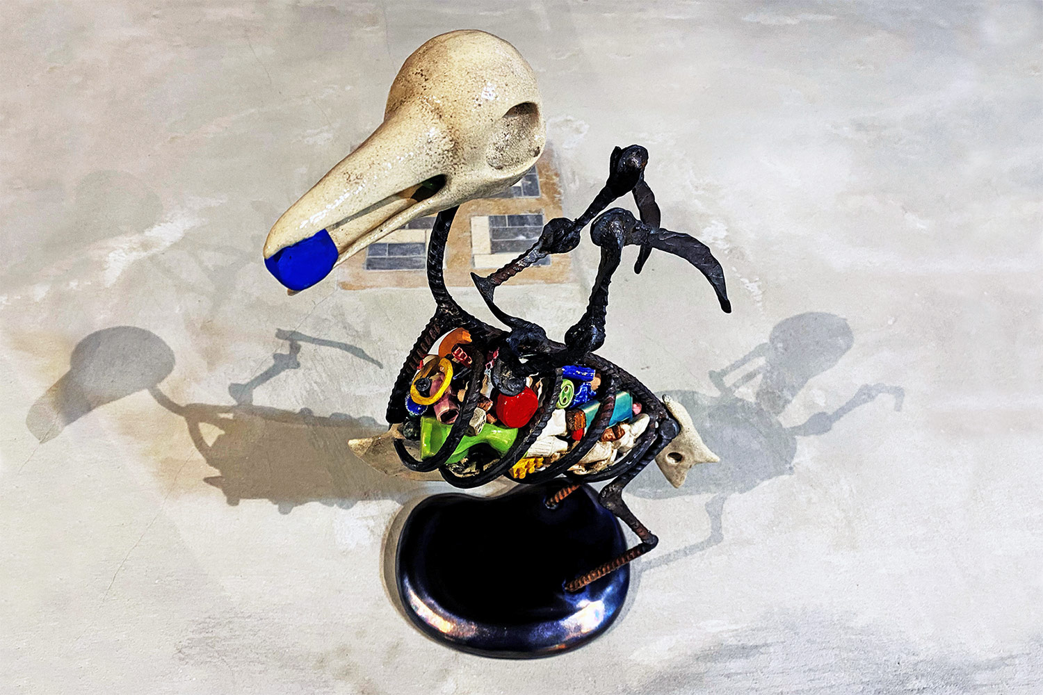 Создатель экспоната «ПринЦЫПИальная птица» — Анастасия Чарина, даёт нам возможность наглядно оценить последствия «неправильного питания» пернатых.