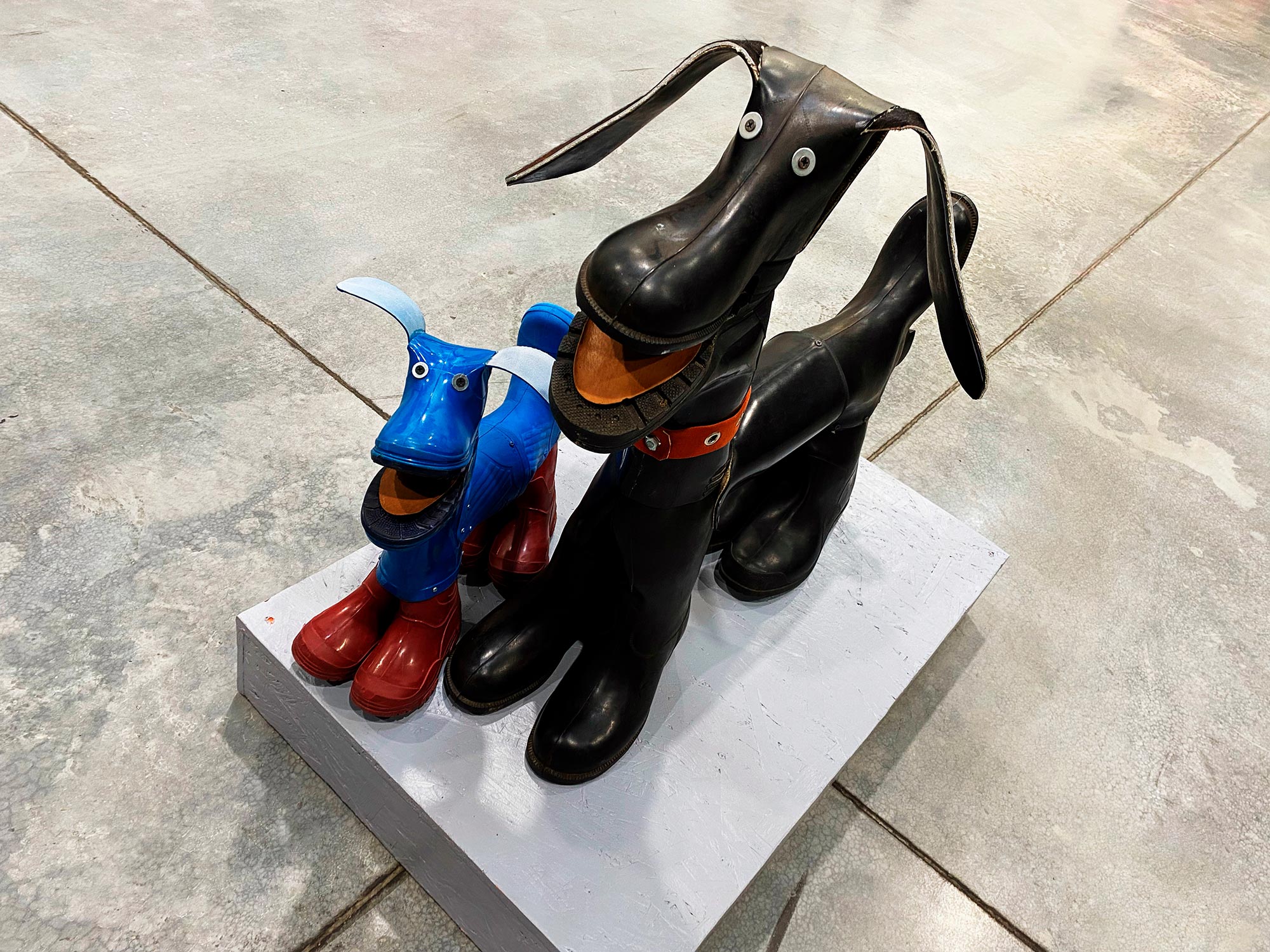 А автор из города Реутов Владимир Рунов, создавший огромное количество экспонатов для БРАТЬЕВ-МУзеев «МУ МУ» и «МУ МУ КА» продемонстрировал ещё один вариант использования старых резиновых сапог. Теперь они не какая-то ненужная обувь, а забавные СобакИ-скороходы! Которые могут стать элементом декора, игрушками для детей и питомцами для тех, кого мучает аллергия!))))