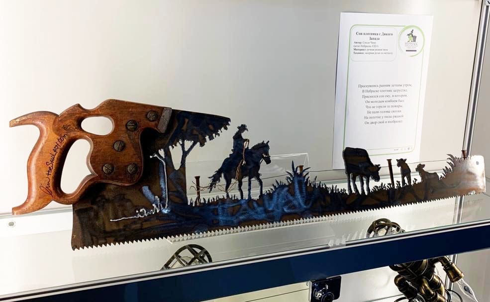 Экспонат прибыл к нам из штата Небраска (США). И, возможно, автор Синди Чинн закладывала в него совсем другой сюжет, но потому наш Музей и называется «художественным», что каждый автор может рассказать свою историю через творчество, но посетитель или зритель поймёт её по-своему! В этом и состоит магия искусства!