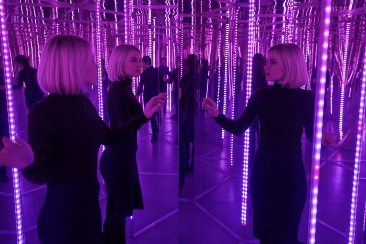 Лабиринт — это Вселенная, непостижимость, движение. В зеркальном коридоре с эффектной подсветкой возникает иллюзия бесконечности. Множество отражений окружает ступившего сюда посетителя. Это все ещё МУзей или уже мир зазеркалья? Где же выход из большой оптической ловушки? Вот же он… а, нет, это просто зеркало. Самое время полюбоваться собой и задуматься об оставленном экоследе и мире вокруг. Аттракцион включён в стоимость посещения.